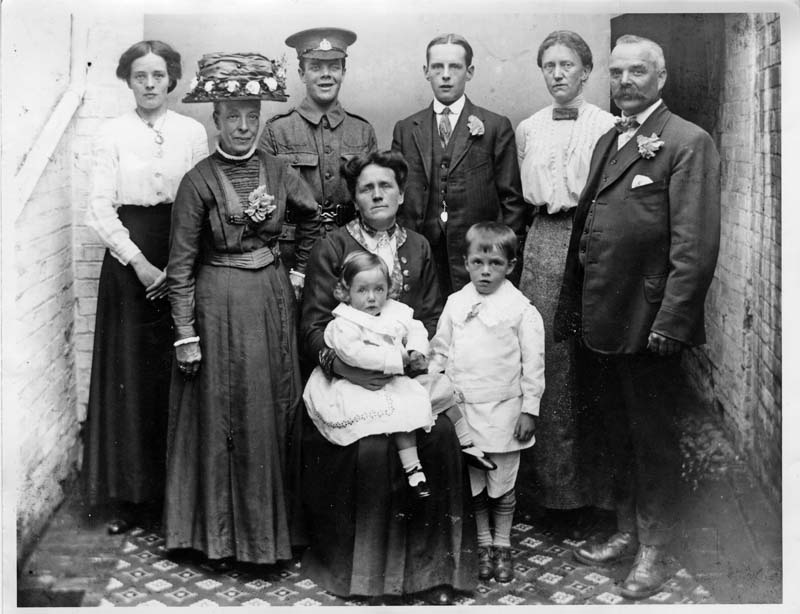 John Thomas Harrison started work as a telegraph messenger and subsequently became a postman at Birmingham head office. He lived at 21 Grove Avenue, Solihull with his parents, John (also a postman) & Bertha Sarah (née Turner), as well as his younger brothers, William Percy Hector Harrison (born 2nd August 1898, who served in the Royal Naval Air Service during the war, and later became a police officer in Birmingham) and Richard Turner Harrison (1909-1917). The boys had an older sister, Mary Annie (1894-1973), who worked as an under-nurse for the Lindner family in 1911. She married Joseph A. Wynn in 1923. A second sister, Bertha Edna, died in February 1908, aged two months.