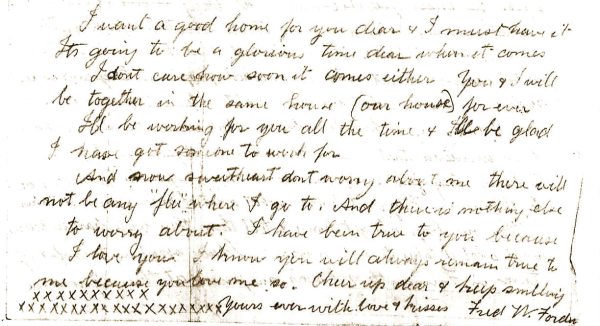 The letters were sent to his wife, Edith Forder (née Hobbins) whom he had married at St Alphege Church, Solihull on 5th June 1918. It seems that after six months of married life in England, the couple were parted when Frederick returned to Australia in January 1919, and they never saw each other again.