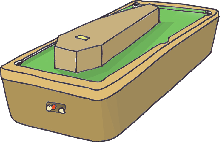 At this, Auden led the wedding party into the billiard room where they were confronted with the sight of a coffin lying on the billiard table!