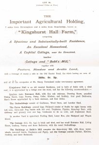 The Victoria County History gives an account of the descent of Kinghurst Hall from the de Montfort family to the Digby family, as does The History of Kingshurst (available to borrow or purchase from Kingshurst Library or The Core Library, Solihull). The Digbys owned the Hall until 1919, when it was included in a catalogue of a sale of outlying portions of the Coleshill Estate. The Core Library, Solihull has a photocopy of a few pages of the catalogue (ref.: NC-Kingshurst), including that relating to the hall.