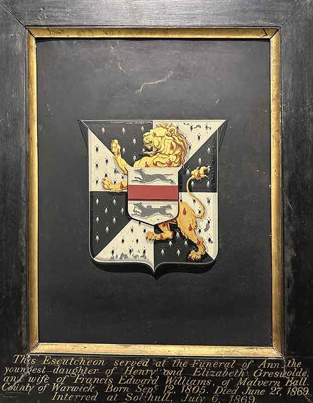 Elizabeth Greswolde died, aged 55, on 30th January 1855. She was unmarried and she left her share of the Malvern Hall estate to her brother-in-law Francis Edward Williams (1804-1885) for his lifetime and then it was entailed in the families of his sons.