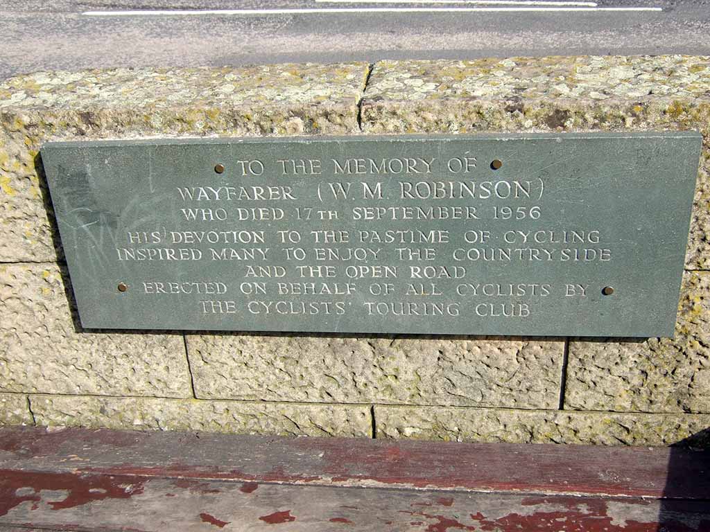 W. M. Robinson, known to friends as “Robbie,” died in Birmingham on 17th September 1956 and is buried in Witton Cemetery. A bench was erected in his memory on The Green, Meriden in 1959, close to the National Cyclists’ Memorial, which had been unveiled in 1921.