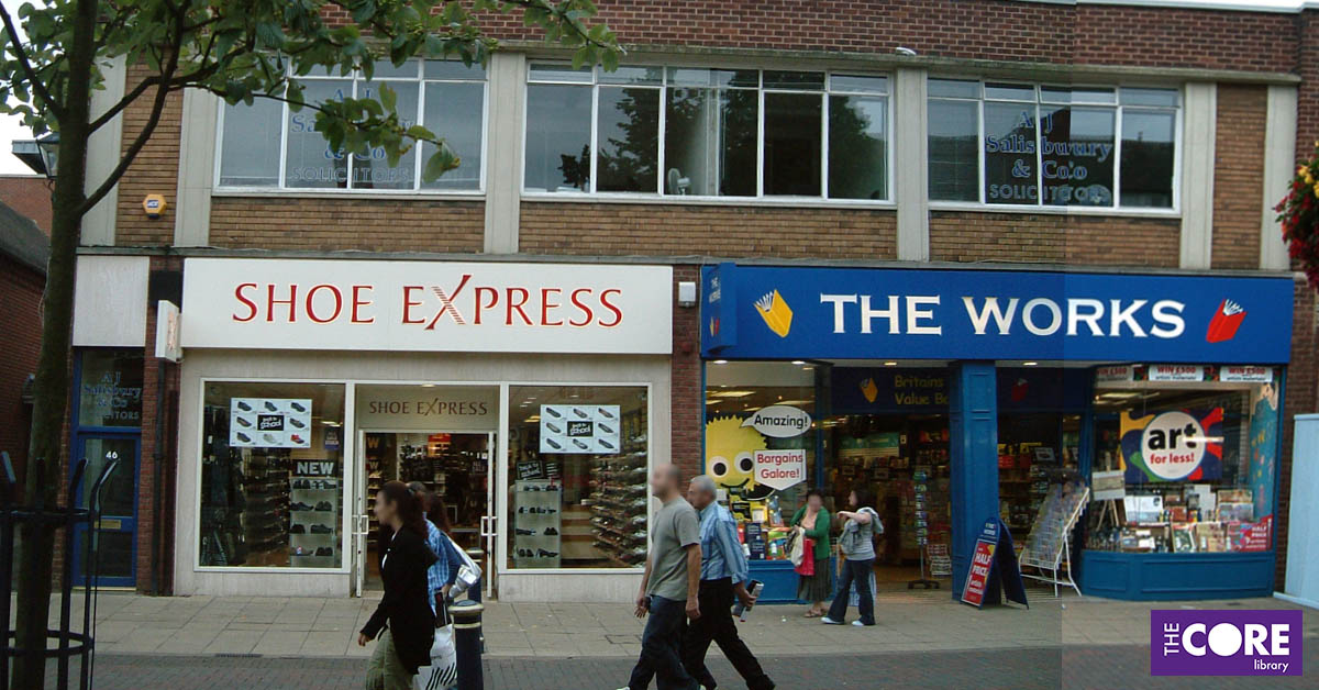 By November 1992 the premises had been divided into two shops – no. 44 was occupied by Kentucky Fried Chicken and no. 42 by Peter’s bookshop. By 1995, no. 44 had become Shoe Express (Stead & Simpson by 2012). It was vacant in 2017 but opened as the Paramo Lounge on 14th March 2018. No. 42 had become The Works by 1999.