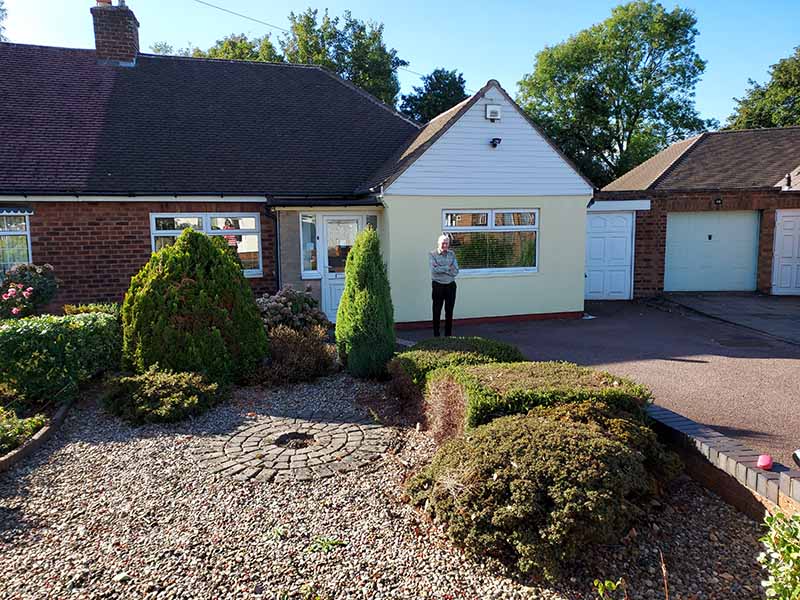 Mr Waugh got involved in celebrating Hobs Moat Library’s sixtieth anniversary in 2017 by letting us have information and photographs of the Self-Build project. I recently had the pleasure of being invited into Mr Waugh’s home to talk about his experience of the build. He happily showed me around the bungalow and his beautiful garden, which he upkeeps with the help of his son, who visits him regularly.