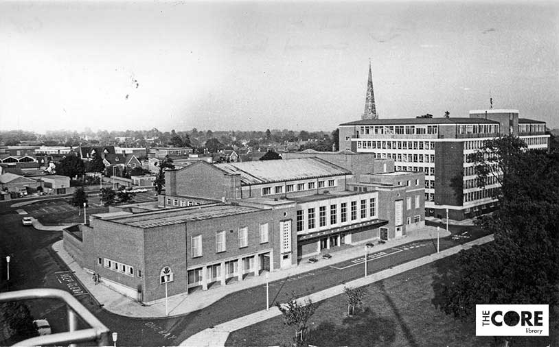 The Civic Hall cost £369,000 and was ten years in the planning. It marked the first stage of the construction of the borough’s new Civic Centre on the site of the Old Priory between the High Street and Homer Road.