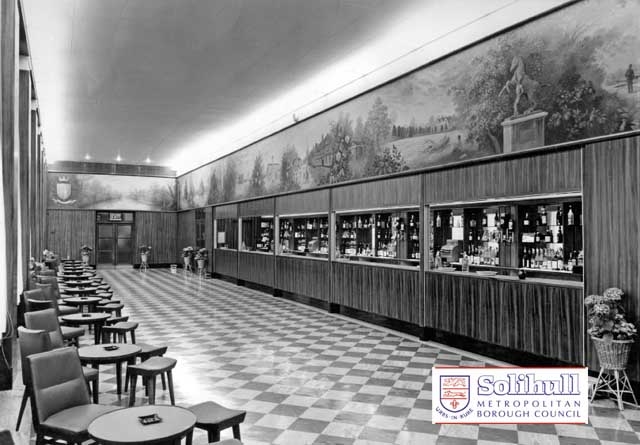 In the foyer of the Civic Hall, the Queen met artist Anthony Baynes (1921-2003), who had created a 19-panel mural installed as a continuous frieze along two end walls and above the bar on the upper floor of Solihull Civic Hall. The mural depicted various Warwickshire scenes and was 5ft 4in high and 140ft in length. It was specially designed for the 90ft long and 18ft wide foyer/bar area.