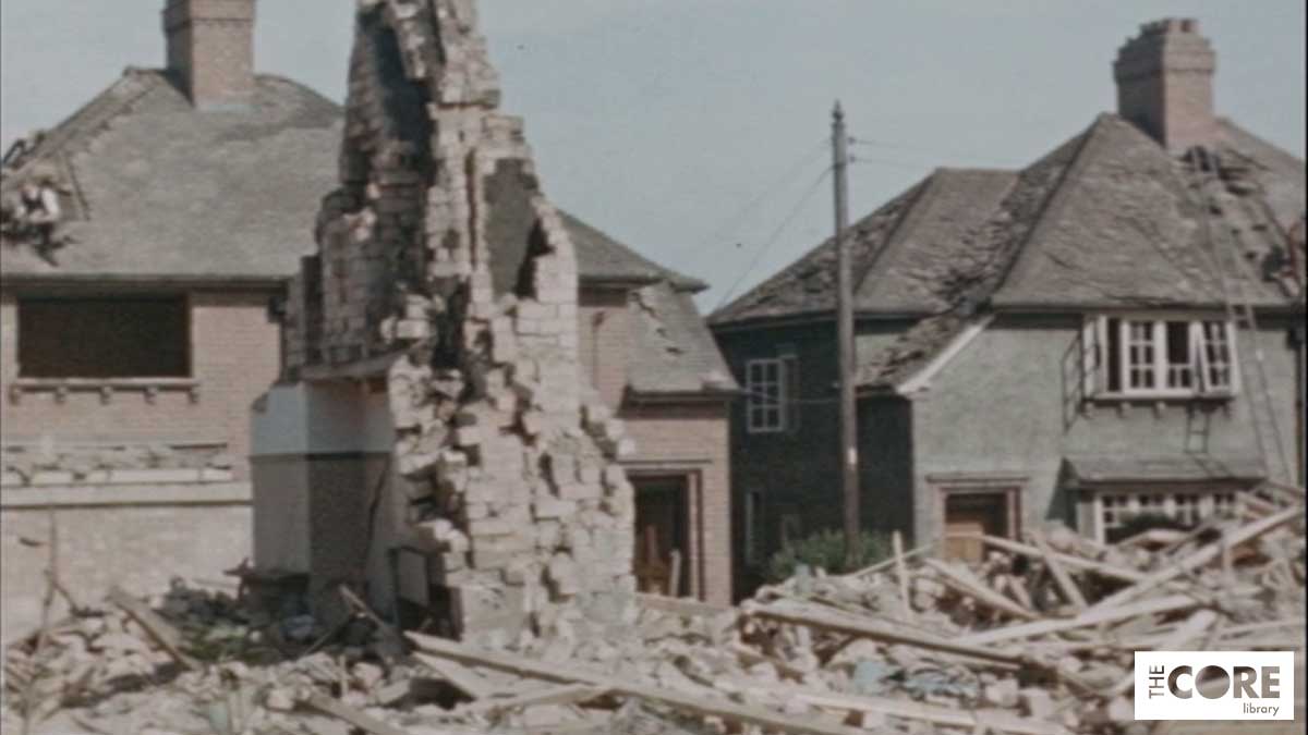 Some silent film footage of the bomb damage was captured by Councillor H. T. Lavender – a title slide notes that within the space of 30 seconds, ten people were killed and 32 were injured.