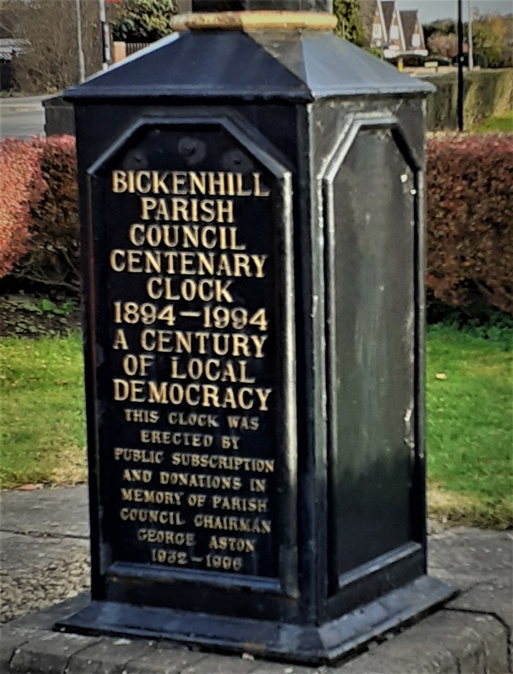 To mark Bickenhill Parish Council’s centenary (1894-1994), a 14-foot clock tower was installed in August 1997 at the top end of Marston Green’s Garden of Memory between Station Road and Elmdon Road. The clock was inaugurated at 3pm on 14th September 1997 and has since become an iconic part of Marston Green.