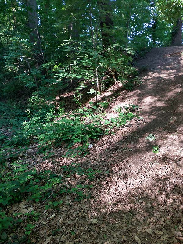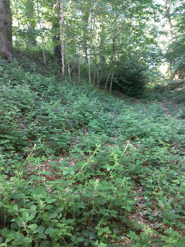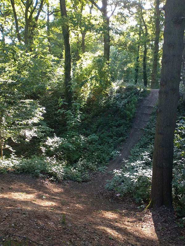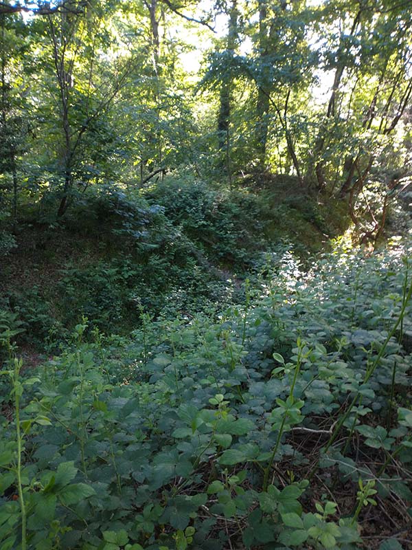 Sadly, these oaks are no longer with us, but due to a programme of planting in the 1780s the site has a thick covering of trees giving it the appearance of a small wood. Owing to the covering of trees, it is necessary to go into the wood to see the moat.