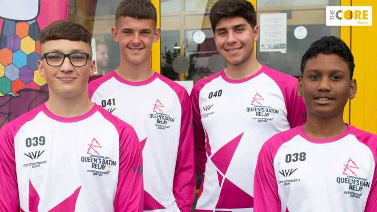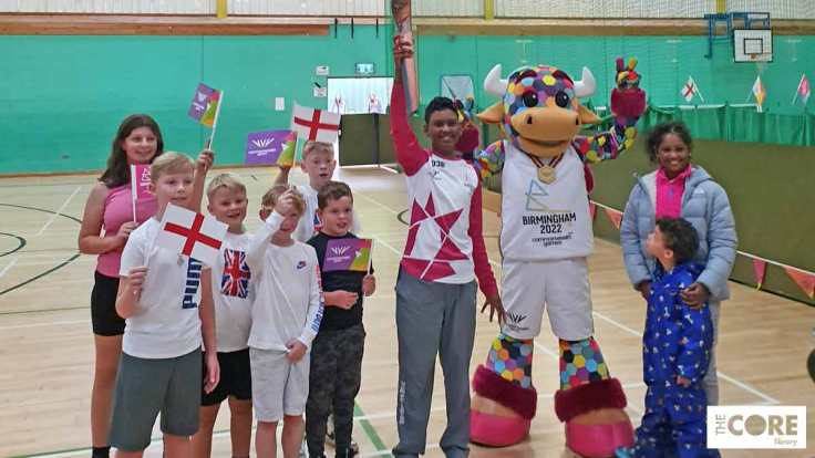 The baton was scheduled to be on site at North Solihull Sports Centre, Conway Road from 9:52am-10:22am. Whilst at the sports centre, the baton joined in with HAF athletics in the sports hall and some free community exercise sessions. Teenage baton bearers Jason (BB038), Lewis (BB039), Sepher (BB040) and Mason (BB041) also took it on a relay on the outdoor running track. Perry, the Birmingham 2022 mascot dropped in to take part in the celebrations.