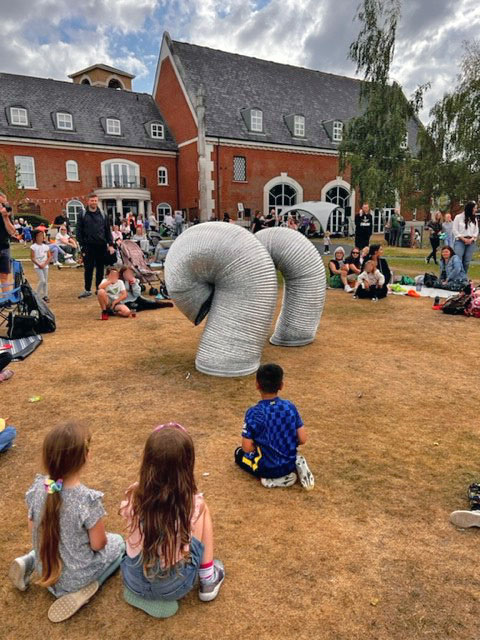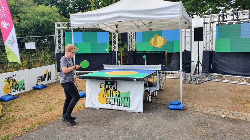 Australian puppet theatre company, Terrapin, brought table tennis, music and robots to Balsall Common with Anthem Anthem Revolution, which was in the park 10am-4pm. This saw participants battle a table tennis robot, with each return of the ball accompanied by a child’s voice and a musical accompaniment, building into a new national song reflecting the children’s hopes and dreams for their country.