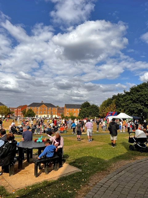 Babbs Mill Park was one of the community celebration venues, where crowds were entertained from 8.30am until 12pm by “Treemendous” nine-foot-tall treants, stilt-walkers John Godbolt and James Guiver from Megabeast Productions. There were also sporting activities, refreshments and taster sessions at the family-friendly event.