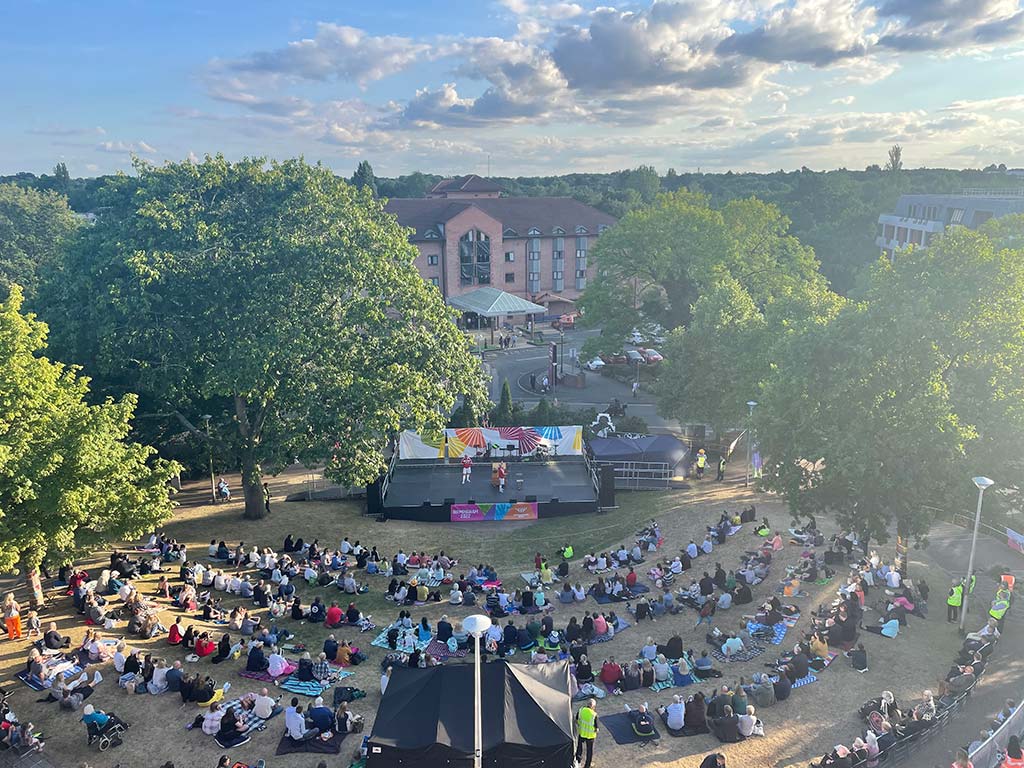 A public ballot had been held for the 500 free tickets to watch the end of day celebrations, featuring Hannah Elsy Productions’ Shakespeare Review, Bread & Butter Theatre Company’s 1980s PE teachers, and a community musical.