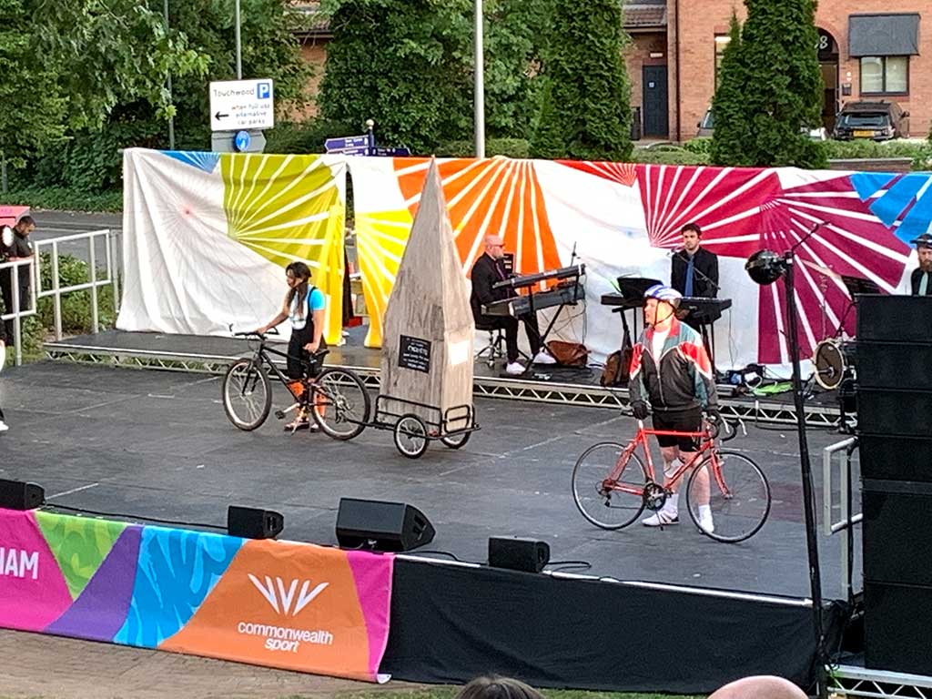 Although the baton had departed Solihull, the event in Golden Jubilee Gardens continued for a further hour with a performance of On Yer Bike! – a community musical produced by Parrabbola for Solihull Council Cultural Services.