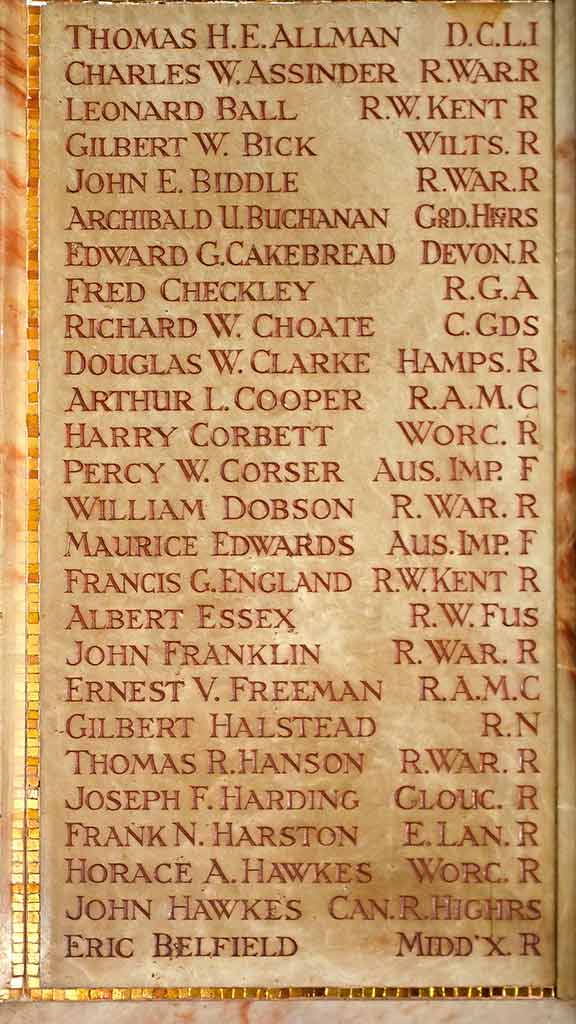 In the Name of the Father, and of the Son, and of the Holy Ghost, we dedicate this Window and these Tablets to the Glory of God, in Memory of the Men from this Parish who fell in the Great War.