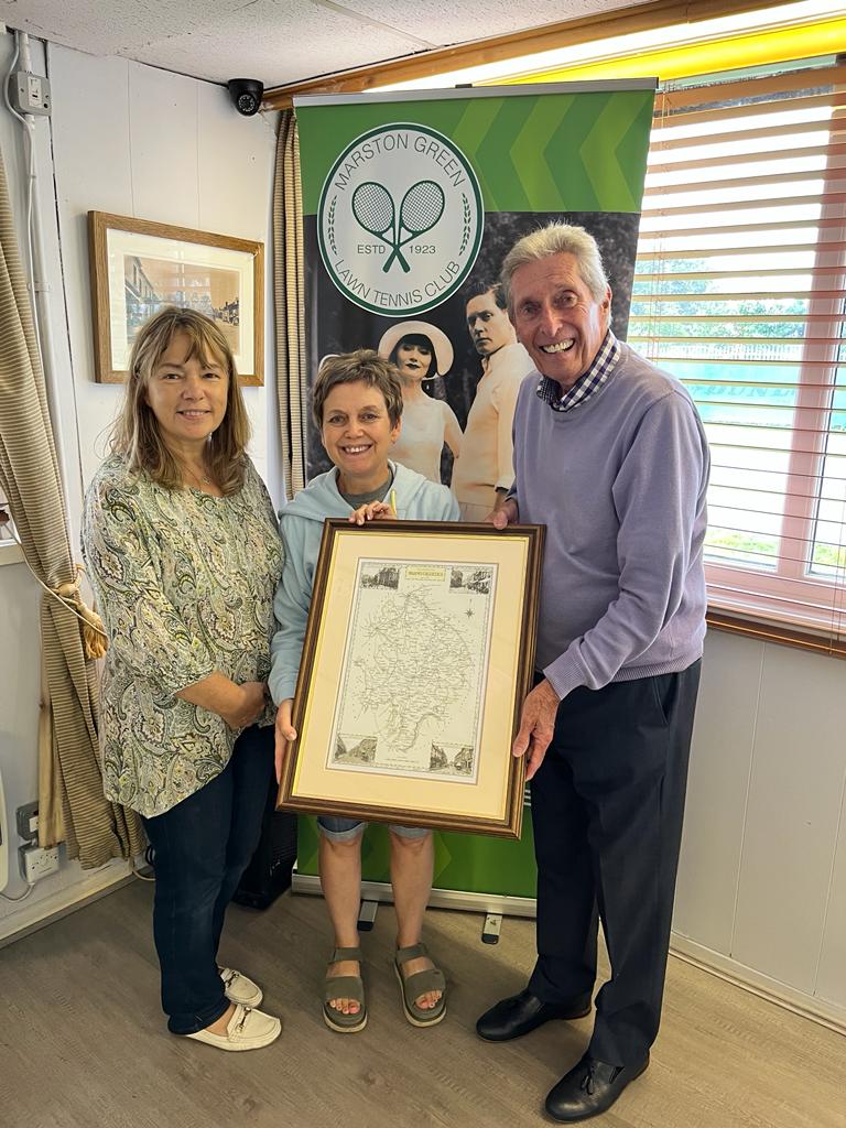 The photographs below show the presentation from Warwickshire LTA in 2023 to celebrate a hundred years of tennis in Marston Green at MGLTC with (L-R) Club Secretary Tracey Blackwell, Club Chair Gina Godwin, and Warwickshire LTA Chair Sherrie Meaking. There are also photographs of the 1920s-themed afternoon tea party held on 10th June 2023.