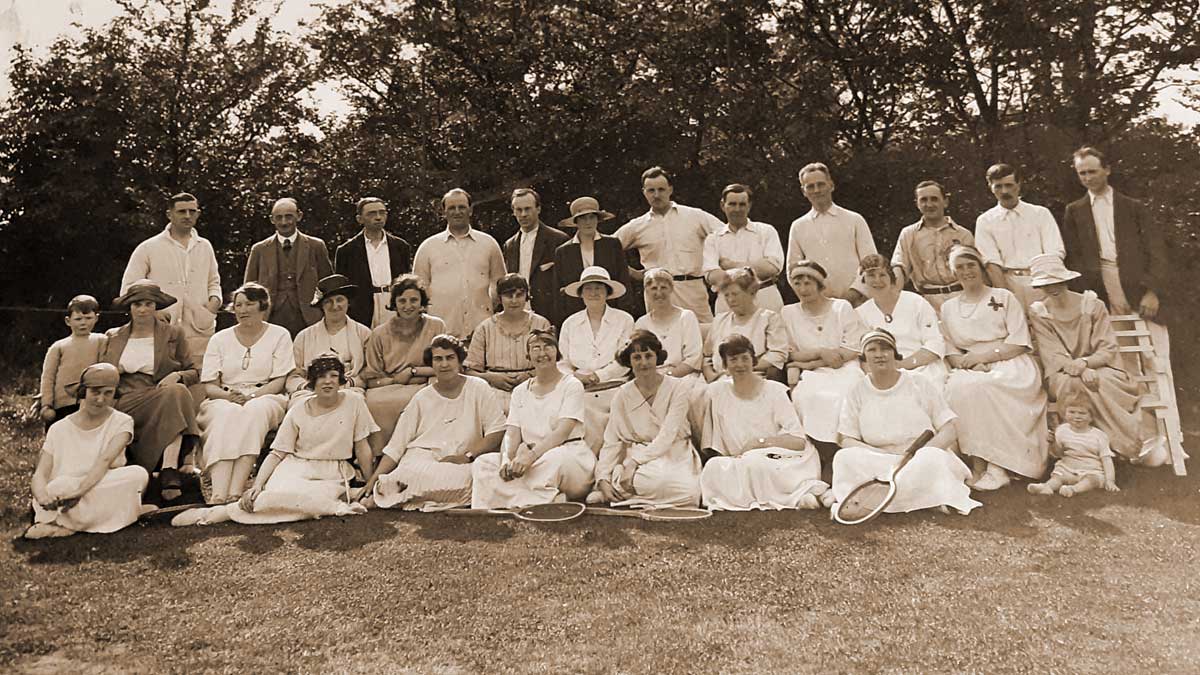 Marston Green Lawn Tennis Club was founded in 1923 and was known as Elite Lawn Tennis Club. The members in 1923 are pictured above. The women wore long dresses and men wore long trousers, and initially, there were more women players than men. The Elite name was dropped in 1926 and it became MGLTC.