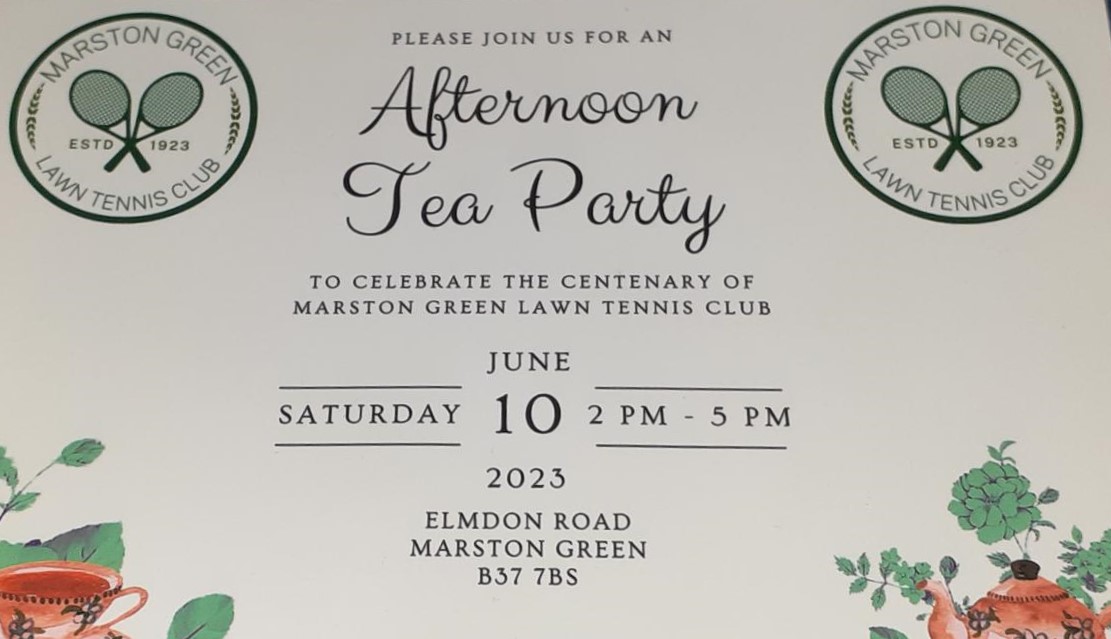 For a hundred years, Marston Green Lawn Tennis Club has been at the heart of the local community, making tennis a game that is available for everyone to play, and where people can be part of a social space, which also welcomes the wider non-playing community. The tea party to celebrate the hundred year anniversary is an example of this, with 45 people attending after receiving the invitations.