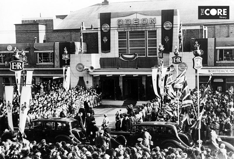 As the Princess stepped into the cinema, more presentations of local councillors and civic officials took place. Her entry into the auditorium was marked by the playing of a fanfare by seven trumpeters of the Warwickshire Regiment. The Princess moved to the stage and the “simple but dignified ceremony” began with the playing of the National Anthem.