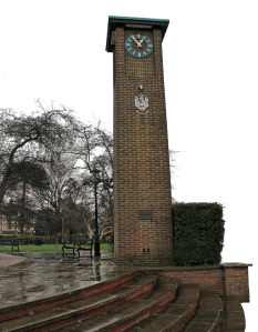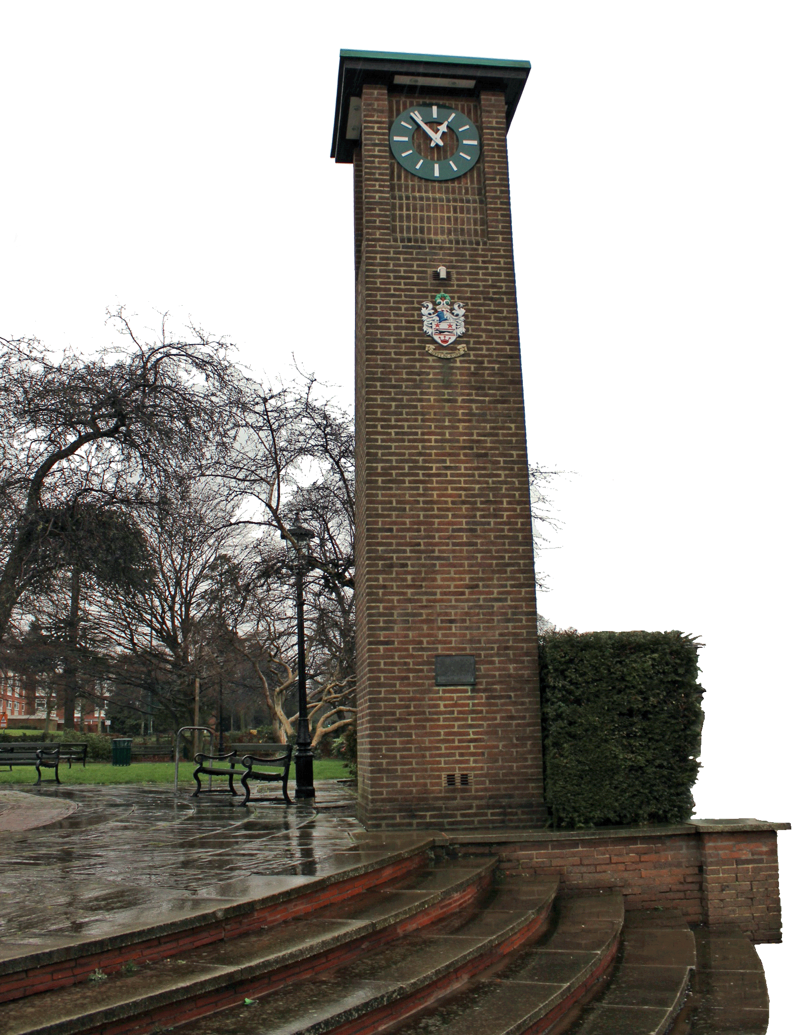 The clock was designed by Mr W. F. Thompson, Deputy Architect in the Borough Surveyor’s Department. The tower was already complete by 1st April but the delivery of the clock mechanism was still awaited. The clock, still in place in Brueton Gardens, was set in motion by the Mayor, Councillor H. B. Shaw, on 5th May 1964.
